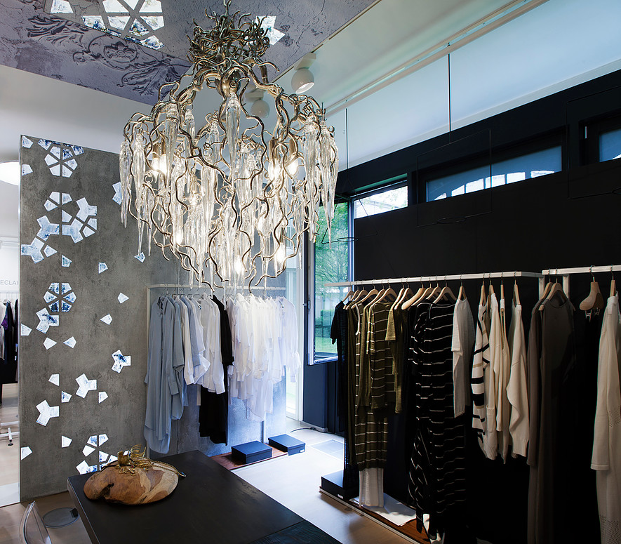 Das System hat Heilight erstmals im Showroom der Düsseldorfer Modeagentur ACO installiert und kann vom Einzelhandel problemlos adaptiert werden. Durch seine modulare Bauweise gewährleistet es eine vergleichsweise kosten- und zeiteffiziente Veränderbarkeit sämtlicher Raum- und Lichtelemente. Als Trennwände und Deckenelemente wurden hier Leuchtkästen mit verschiedenem Dekor verwendet.